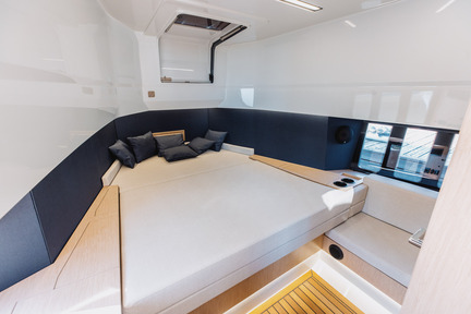 The aft. cabin has the option of a comfortable atrium, two single beds or a large double with its own head. Together with the additional bunk in the pilothouse, the EXPLR 44 comfortably accommodates up to 6 people. Even with all beds in use, there’s free access in and out of all the cabins. Another thing that separates the 44 EXPLR from others, is its cleverly designed large rear-facing windows, which make the aft cabin a pleasant lounge for privacy and comfort.